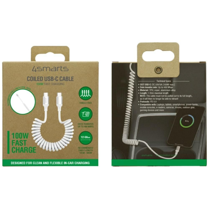 Kabel spiralny 4smarts USB-C do USB-C 100W Biały - White