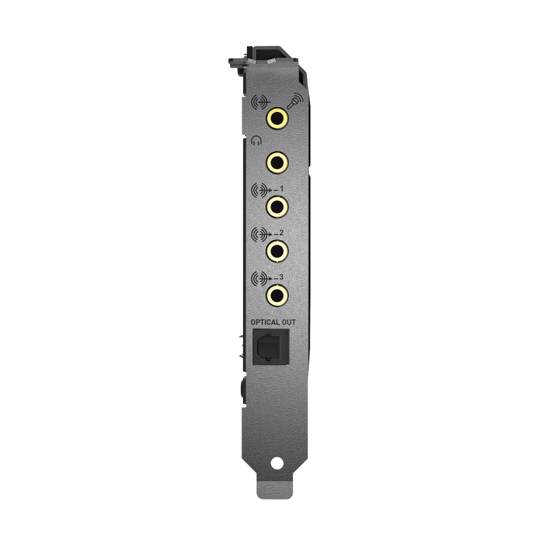 | Złącza / porty | Wyjście optyczne TOSLINK, tylne (Rear) 3,5 mm, Wyjście Center / Subwoofer 3,5 mm, Mikrofonowe/liniowe 3,5 m, Słuchawkowe 3,5 m, Wyjście przednie 3,5 mm; Dodatkowe: wejście mikrofonowe i słuchawkowe 3,5 mm, słuchawkowe 7 mm, mikrofonowe 6,3 mm (mono) |