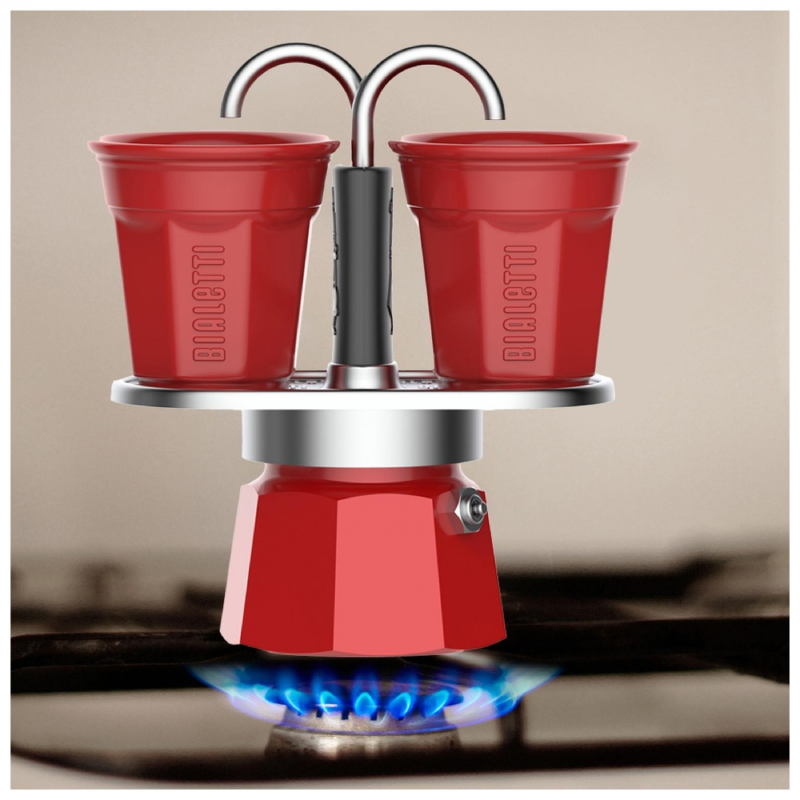 Kawiarka Bialetti Mini Express 2tz + 2 filiżanki Czerwona - Red