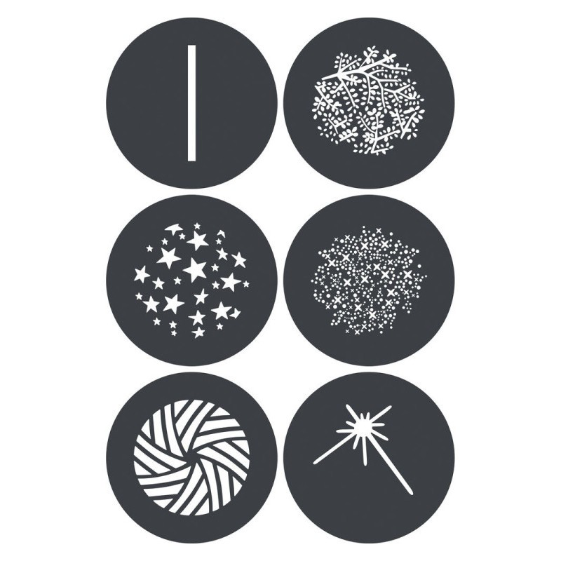 Zestaw GP GS3 zawiera 6 nakładek gobo do systemu projekcyjnego G-Mont. Nakładki rzucają wzory na tło lub fotografowany obiekt.