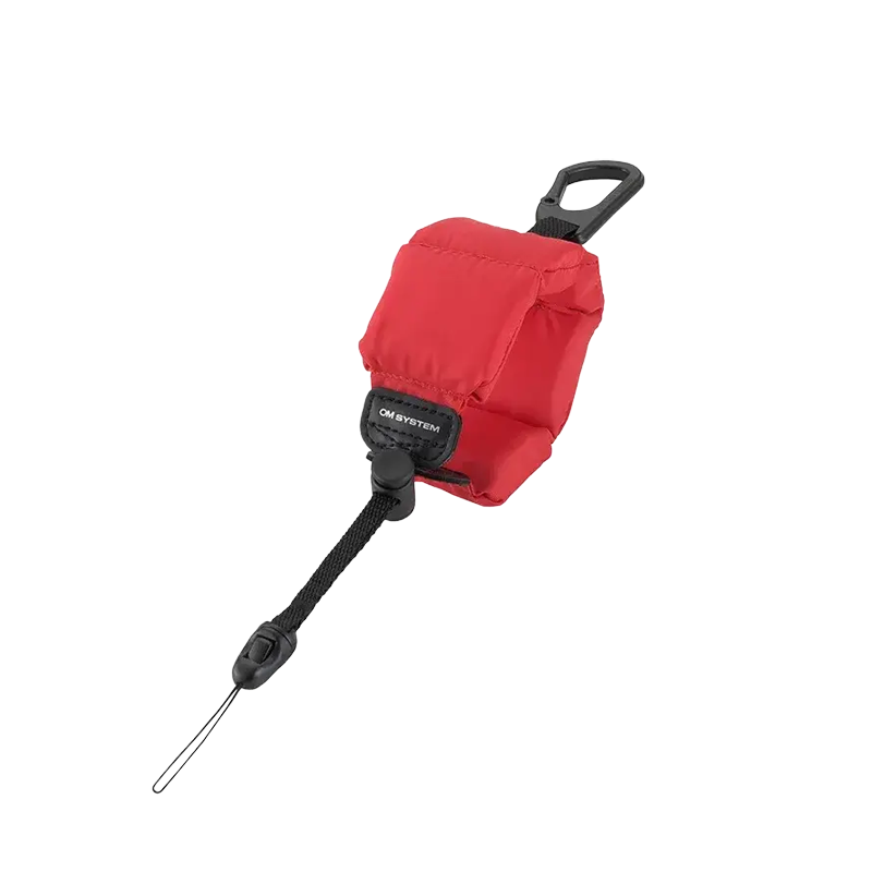 Pływający pasek do aparatów OM System z serii Tough utrzymuje aparat tuż pod powierzchnią wody chroniąc go przed zgubieniem. Jest dobrze widoczny nawet z większej odległości dzięki jaskrawej czerwonej barwie.