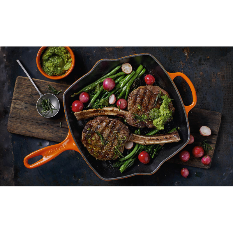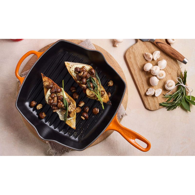 Ta patelnia grillowa to uniwersalne naczynie do obsmażania i pieczenia. Wykonana z emaliowanego żeliwa, działa na wszystkich źródłach ciepła, włącznie z kuchenką indukcyjną i grillem.