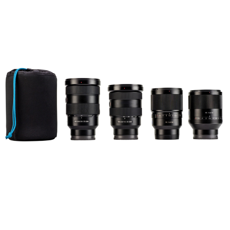 Miękki pokrowiec na obiektyw umożliwiający przenoszenie obiektywu w plecaku lub torbie, gdy masz ograniczoną ilość miejsca. Jest lekki i posiada wygodne zamknięcie na sznurek.