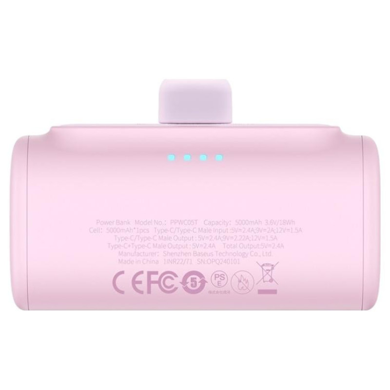 Ten różowy powerbank Baseus z serii Compact to idealny mini powerbank o pojemności 5000mAh do telefonu z wbudowanym złączem USB-C. Dzięki obsłudze szybkiego ładowania 20W PD, ten powerbank gwarantuje ładowanie bez kabli dla urządzeń Android, będąc stylowym i niezawodnym towarzyszem podróży.