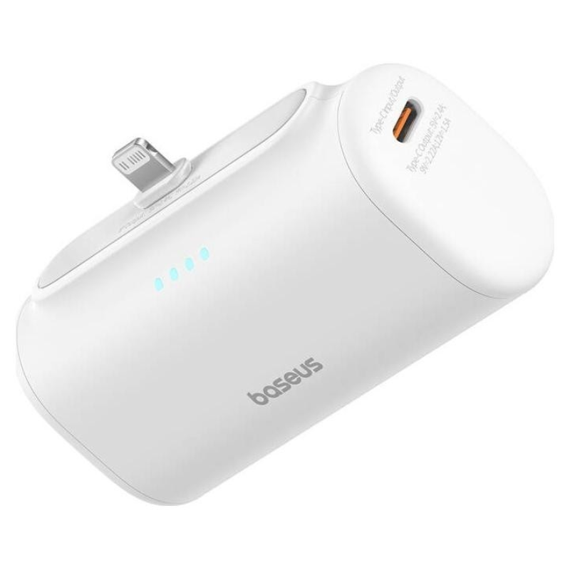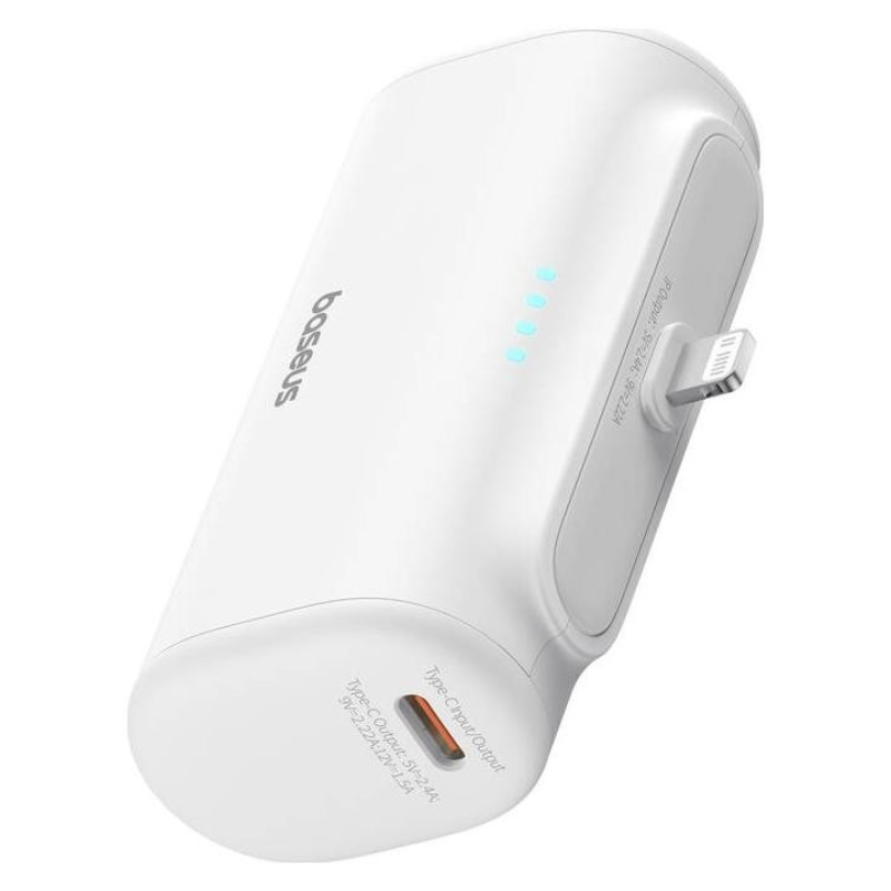Ten biały powerbank Baseus to ultra kompaktowy mini powerbank o pojemności 5000mAh, idealny do szybkiego ładowania urządzeń iPhone. Dzięki zintegrowanemu złączu Lightning oraz mocy 20W PD Fast Charge, zapewnia ładowanie bez kabli, a sam powerbank można naładować do pełna w niespełna dwie godziny.