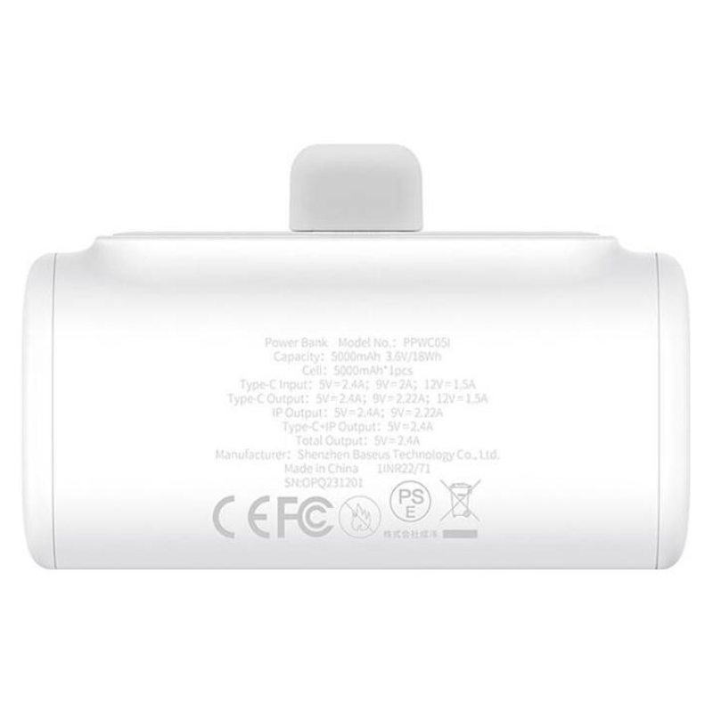 Powerbank Lightning OS-Baseus Compact 5000 mAh 20 W Biały - White