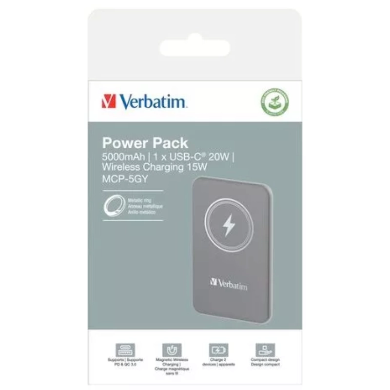 Powerbank indukcyjny Verbatim 'n' Go 15 W 5000 mAh 32244 Szary - Grey
