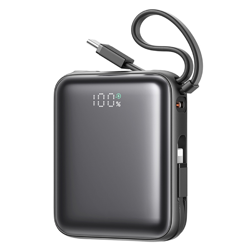 Ten uniwersalny powerbank Joyroom o pojemności 10000 mAh i mocy 22,5 W to niezawodne źródło zasilania, idealne do jednoczesnego ładowania wielu urządzeń. Wyposażony w zintegrowane kable Lightning i USB-C, stanowi kompletne rozwiązanie jako powerbank do samochodu bez konieczności noszenia dodatkowych przewodów.