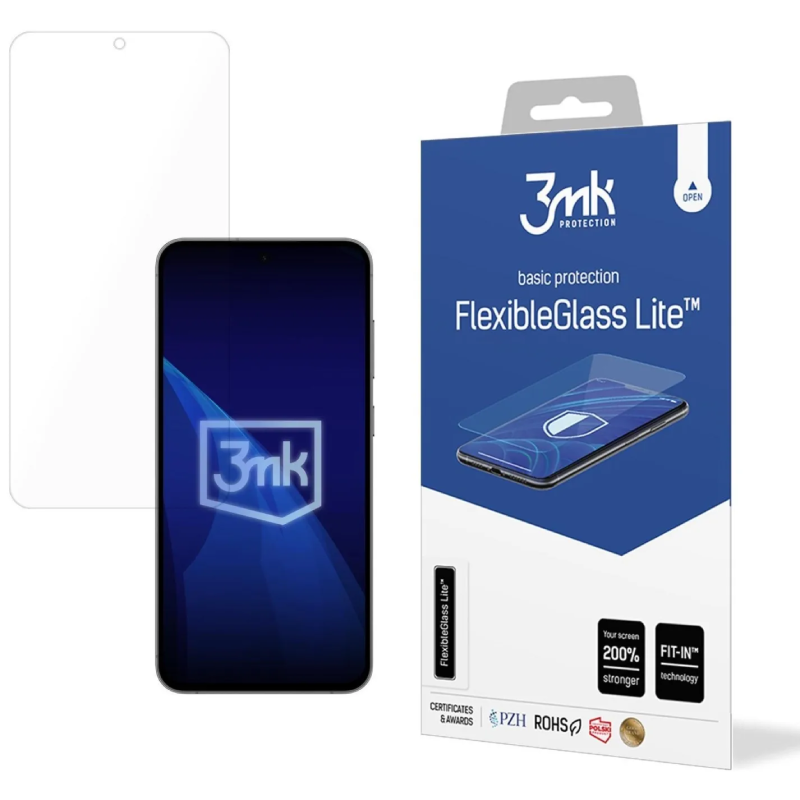 Szkło hybrydowe 3mk FlexibleGlass Lite to szkło do telefonu Samsung Galaxy S25 FE, które łączy elastyczność folii i odporność szkła ochronnego, oferując skuteczne zabezpieczenie ekranu z minimalną grubością 0,16 mm.