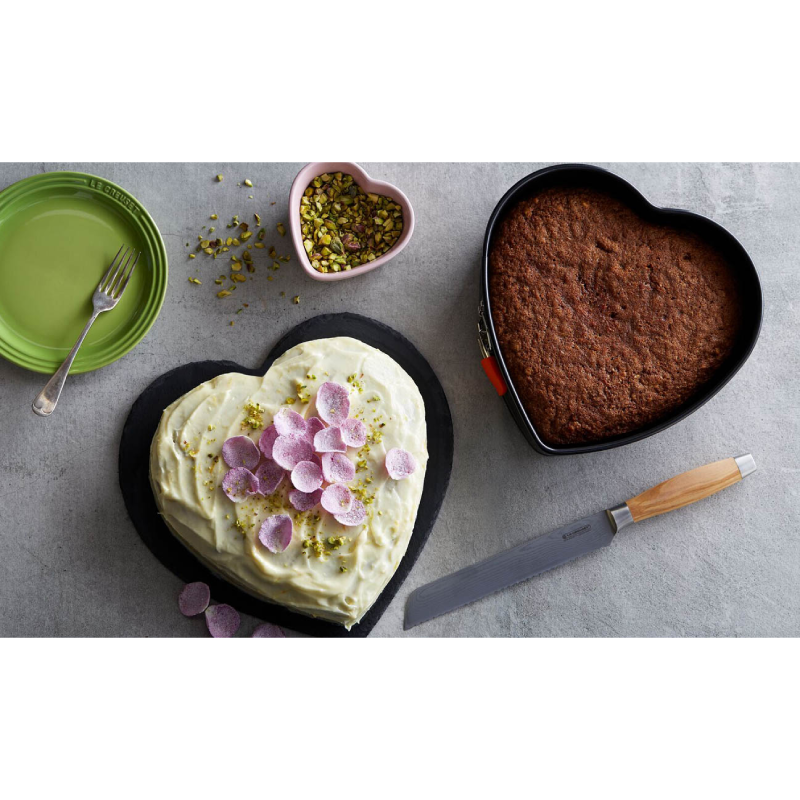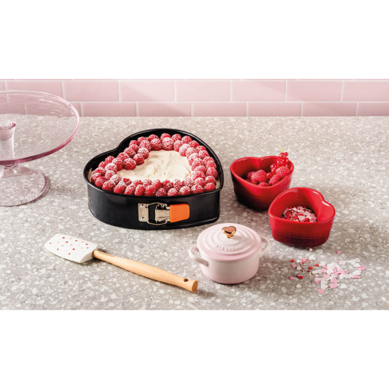 Ta urocza tortownica w kształcie serca od Le Creuset to wyjątkowy element do pieczenia, dzięki któremu można przygotować niepowtarzalne ciasta na specjalne okazje, takie jak Walentynki czy rocznice. Forma wykonana jest z wytrzymałej stali węglowej pokrytej nieprzywierającą powłoką, co gwarantuje łatwe wyjmowanie wypieków oraz proste czyszczenie.