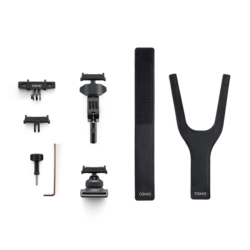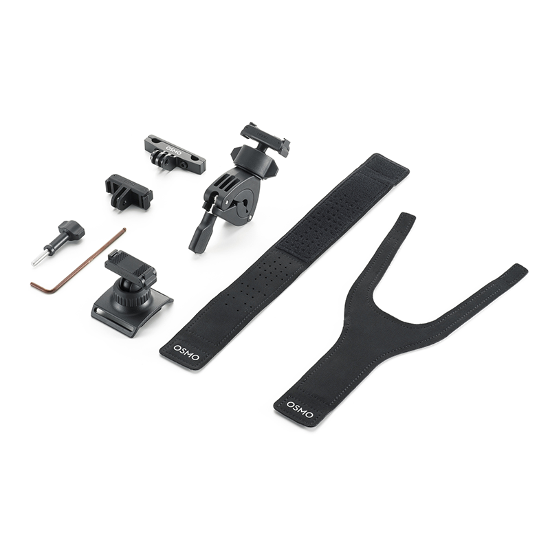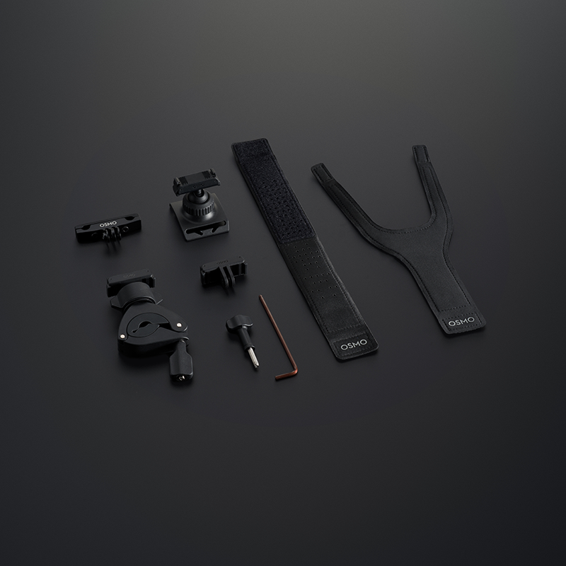 | Dołączone akcesoria | Dwukierunkowy adapter z systemem szybkiego montażu Osmo, opaska na nadgarstek 360° Osmo Action, uchwyt na kierownicę, Mocowanie do siodełka rowerowego, śruba blokująca, klucz imbusowy |