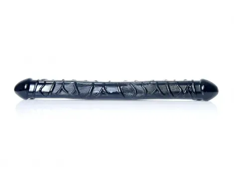 Podwójne dildo o długości 32 cm z realistycznym żylkowaniem i dwoma anatomicznymi końcówkami, wykonane z miękkiego, elastycznego materiału.