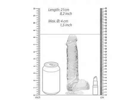 Przezroczyste dildo o długości 21 cm, z prostym trzonem, idealne do penetracji vaginalnej i analnej. Wykonane z elastycznego gumowego materiału, gwarantujące przyjemne odczucia podczas użycia.