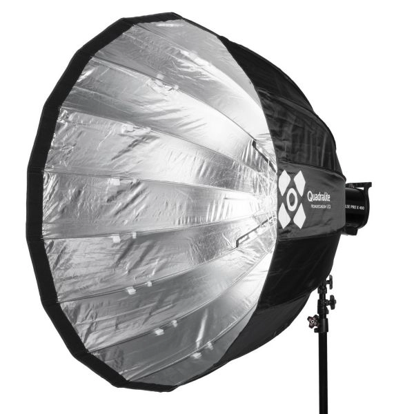 Softbox heksagonalny Quadralite Softbox Hexadecagon 120 to wysokiej klasy produkt o dużej powierzchni rozpraszającą światło, niezbędny w każdym studiu zajmującym się fotografią produktową jak i portretową. Softbox Hexadecagon o średnicy 120 cm zapewnia bardzo miękkie, a jednocześnie łatwe do kontrolowania światło niezależnie od tego, czy pracujemy w studiu czy w plenerze. Jego szesnastościenny kształt powoduje, że odbicia w oczach fotografowanej osoby są okrągłe i naturalne, co wspaniale sprawdza się podczas sesji portretowych, modowych czy też beauty.