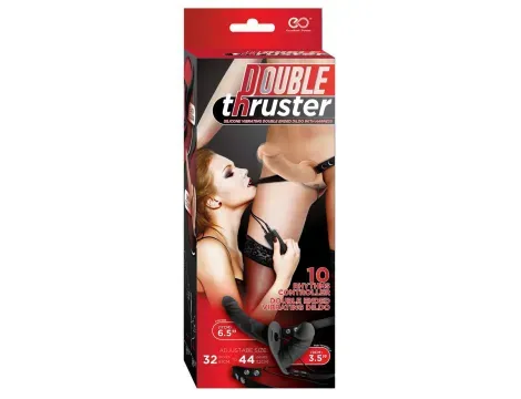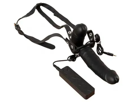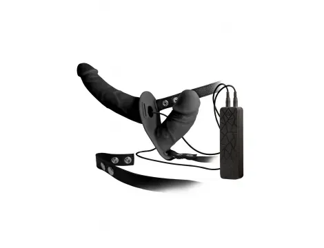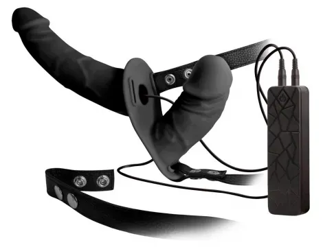 Strapon wyposażony w wibracje i podwójną końcówkę dla jednoczesnej stymulacji obojga partnerów.