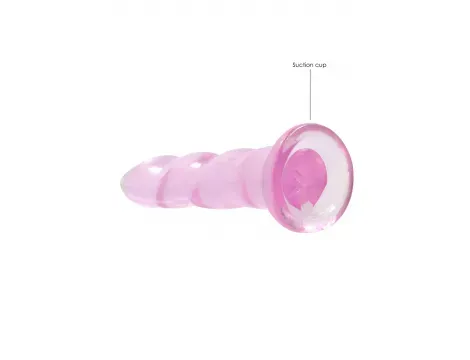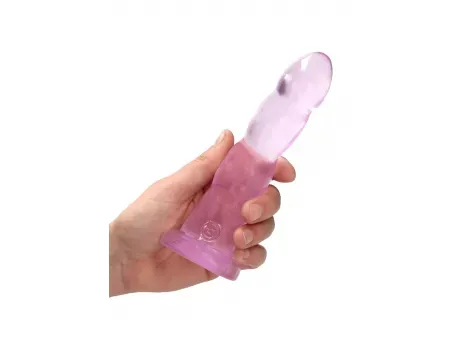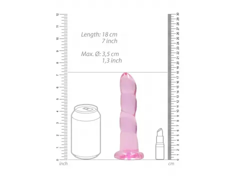Różowe dildo o długości 18 cm wykonane z miękkiego, żelowego silikonu, z realistycznym żylkowaniem i anatomiczną główką, wyposażone w mocną przyssawkę.