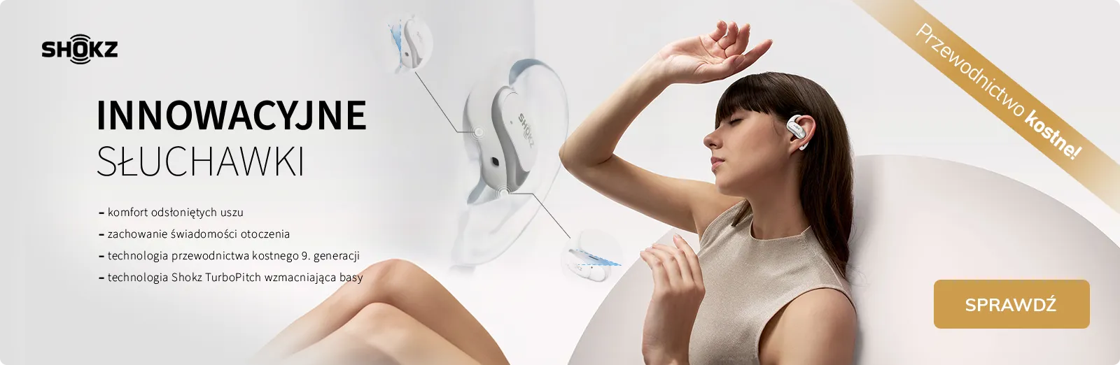 Premiera słuchawek Shokz odbiła się szerokim echem w branży sprzętu audio. Nowe Shokzy powstały z myślą o użytkownikach, którzy oczekują od przetworników dźwięku czegoś więcej, niż tylko dobrego brzmienia. Marka rozwija zaawansowane rozwiązania oparte na technologii przewodnictwa kostnego, która zwiększa komfort słuchania i umożliwia zachowanie pełnej świadomości otoczenia. To podejście docenią szczególnie osoby aktywne podczas treningów outdoorowych, na siłowni czy w domu, spacerów bądź codziennych dojazdów, gdzie bezpieczeństwo i swoboda mają kluczowe znaczenie. Słuchawki kostne Shokz zapewniają wyraźny, naturalny dźwięk połączony z lekką, stabilną konstrukcją oraz wysoką odpornością na pot i warunki atmosferyczne. W porównaniu do słuchawek dokanałowych - zapewniają większą wygodę użytkowania bez odcinania się od świata i intuicyjną obsługę. Nowoczesne materiały, energooszczędne podzespoły i dopracowana ergonomia sprawiają, że zastosowana technologia przewodnictwa kostnego realnie ulepsza codzienność - od sportu, przez pracę, po relaks. Poznaj pełną ofertę nowych modeli słuchawek Shokz i wybierz rozwiązanie, które łączy innowację, funkcjonalność i swobodę słuchania w każdej sytuacji.