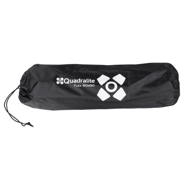 Poszycie jest wykonane z nylonu rip-stop, będącego gwarancją wysokiej wytrzymałości oraz odporności na uszkodzenia. Wnętrze jest wysrebrzone, dzięki czemu równomiernie rozprowadza światło lampy na płaszczyźnie dyfuzyjnej. Front Softboxu Quadralite FLEX posiada zainstalowany kołnierz, pozwalający na przymocowanie plastra miodu. Softbox Quadralite Flex jest przystosowana do pracy z lampami studyjnymi oraz plenerowymi wyposażonymi w mocowanie akcesoriów typu Bowens.