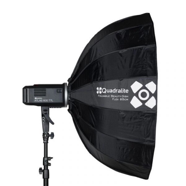 Quadralite Flex Foldable Beauty-Dish to uniwersalny modyfikator światła o średnicy 65cm i dużej powierzchni odbijającej światło. Łatwy do złożenia i transportu, może być wykorzystywany jako beauty dish zapewniając bardzo charakterystyczne, ostre i kontrastowe światło, wspaniale nadające się do fotografii typu beauty, portretowej i modowej. Kiedy jednak zachodzi potrzeba uzyskania miękkiego światła to po dołączeniu ekranów dyfuzyjnych Flex Foldable Beauty-Dish zamienia się w klasyczny softbox. Sferyczna czasza zwiększa wydajność softboxa, poprawia dystrybucję światła i ułatwia ustawienie, szczególnie w mniejszych pomieszczeniach. Oktagonalny kształt Flex Foldable Beauty-Dish zapewnia wyjątkowo naturalne, okrągłe odbicia światła w oczach fotografowanej osoby, co doskonale sprawdza się podczas sesji portretowych, modowych czy też beauty. W razie potrzeby funkcjonalność Quadralite Flex Foldable Beauty-Dish można zwiększyć dołączając opcjonalny grid (plaster miodu).