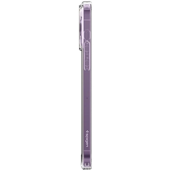 Ultra Hybrid od firmy Spigen to etui jednoczęściowe. Składa się z przezroczystej warstwy wykonanej z poliwęglanu oplatającej krawędzie i tył telefonu oraz wytrzymałej gumowej ramki wokół, wykonanej z termoplastycznego, miękkiego materiału, który dodatkowo chroni urządzenie przed upadkami. Case jest idealnie dopasowany do Apple iPhone 14 Pro i nie ogranicza możliwości ładowania bezprzewodowego.