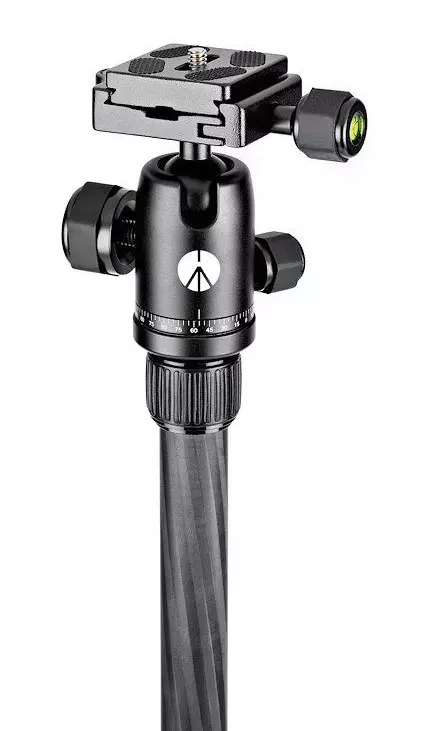 Manfrotto Element Traveller Small Carbon jest wyposażony w aluminiową głowicę kulową z szybkozłączką Arca Swiss ze śrubą 1/4''. Głowica kulowa została zaprojektowana tak, aby zapewniała gładkie ruchy podczas kadrowania i mocno blokowała pozycję sprzętu dokładnie tam, gdzie jest to potrzebne. Wyposażono ją także w osobną blokadę ruchu w panoramie i indeksowaną skalą podaną w stopniach, która umożliwia komfortowe wykonywanie perfekcyjnych zdjęć panoramicznych.