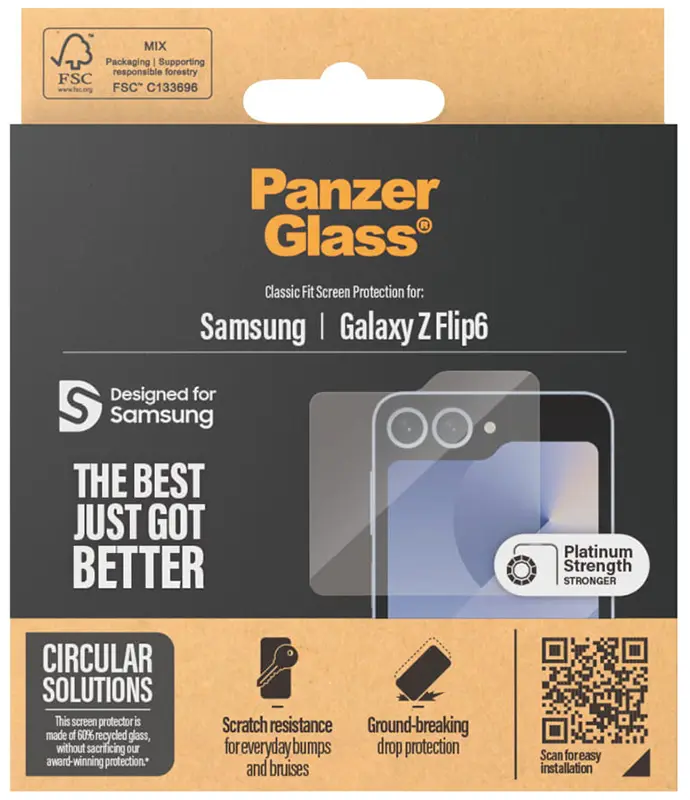 Oryginalne szkło hartowane PanzerGlass Classic Fit Screen Protection na zewnętrzny ekran Samsung Galaxy Z Flip6 zabezpieczy Twój smartfon i zminimalizuje skutki codziennych przeciwności losu, takich jak klucze, monety czy upadki. Classic Fit, oprócz skutecznej ochrony, zachowuje pełną wrażliwość na dotyk, a dzięki powłoce oleofobowej zapobiega powstawaniu smug i pozostawianiu odcisków palców. Wymiary pozwalają na łączenie go z większością dostępnych na rynku etui, bez ryzyka podważania szkła.