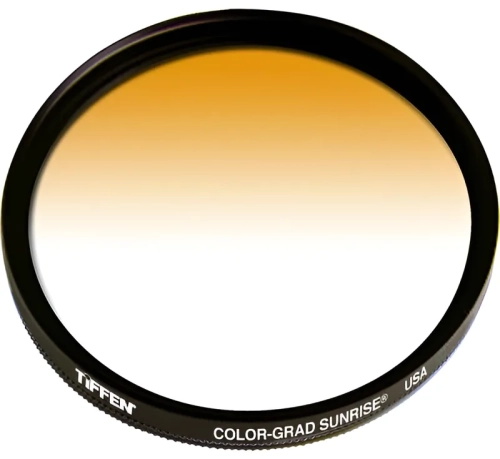 Połówkowy filtr Sunrise (wschodu słońca) firmy Tiffen jest w połowie kolorowy, w połowie przezroczysty, w obrotowym uchwycie, z płynnym, stopniowanym przejściem w centralnej części. Color Graduated Sunrise jest częścią wielokrotnie nagradzanej serii filtrów Color Graduated i jest jednym z najczęściej używanych filtrów w fotografii krajobrazowej. Uwydatnia rzeczywistość, dodając obrazowi subtelności lub dramatyzmu.