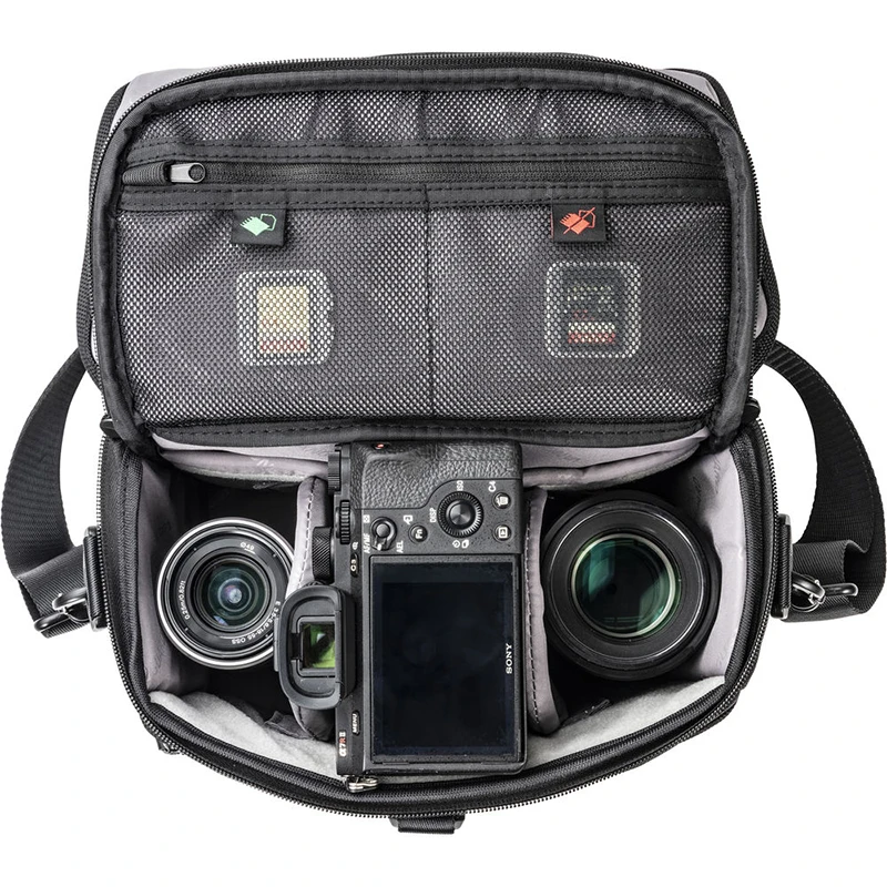 Vanguard Veo Select 22S to stylowa i praktyczna torba na ramię, stworzona z myślą o fotografach ceniących mobilność i bezpieczeństwo sprzętu. Dzięki kompaktowym wymiarom i lekkiej konstrukcji idealnie sprawdzi się zarówno w fotografii ulicznej, jak i podczas podróży. Wnętrze z jasną wyściółką ułatwia szybkie znalezienie niezbędnych akcesoriów, a modułowe przegrody pozwalają na dopasowanie przestrzeni do indywidualnych potrzeb. Wystarczająco pojemna, aby zmieścić aparat z obiektywem, dodatkowe szkła, lampę błyskową i mini tablet, a jednocześnie na tyle zgrabna, by nie ograniczać swobody ruchów.