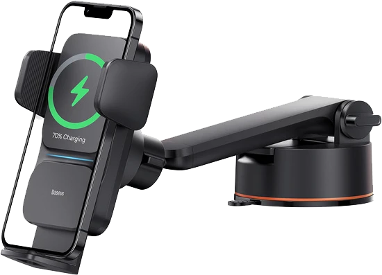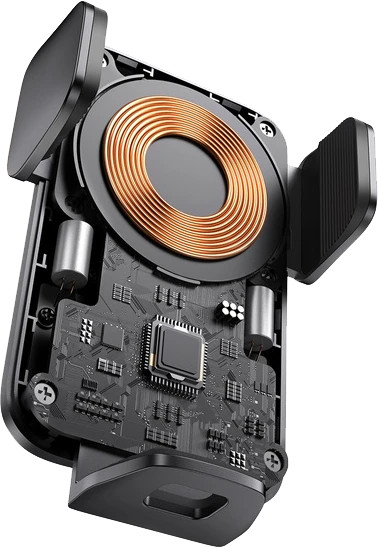 Uchwyt grawitacyjny pełni także funkcję ładowania bezprzewodowego, dzięki czemu możesz używać nawigacji lub rozmawiać przez zestaw głośnomówiący, a także ładować swoje urządzenie w tym samym czasie. Dzięki mocy 15 W w krótkim czasie naładujesz swoją baterię do pełna.