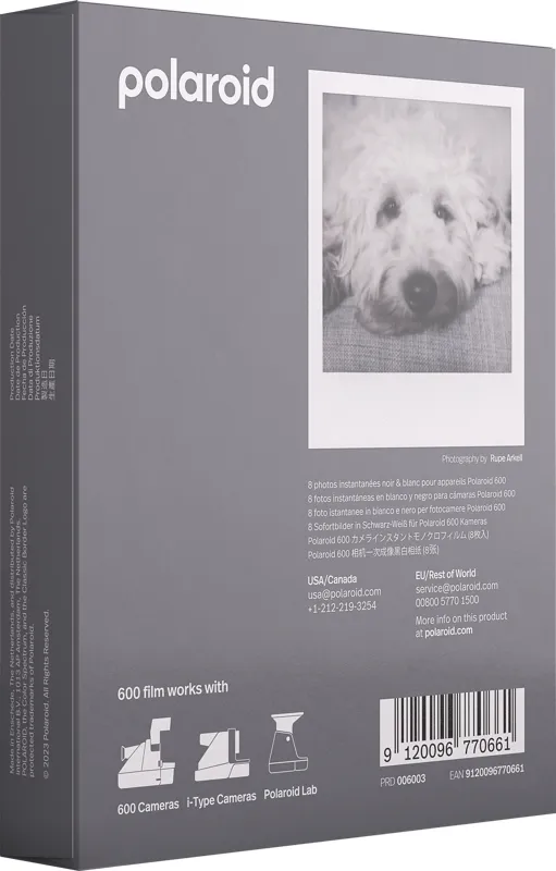Osiem natychmiastowych czarno-białych zdjęć z białymi ramkami. Do użytku w aparatach typu Polaroid 600 oraz I. Obrazy zaczynają pojawiać się w ciągu 2 minut. Pełne wywołanie trwa 10-15 minut, w zależności od intensywności oświetlenia. Film typu 600 wykorzystuje nowoczesną technologię do tworzenia zdjęć o wysokim kontraście, dobrze odwzorowanej czerni i naturalnych przejściach tonalnych, z głębią i niepowtarzalną analogową teksturą, które sprawiają, że fotografia analogowa jest tak charakterystyczna. Wyjątkowy styl związany z obecnością białej ramki jest ważnym elementem historii fotografii błyskawicznej. Ponadto, mimo że ten film ma wbudowany akumulator do zasilania aparatów z serii 600, może być również używany z aparatami i-Type, które mają własne zasilanie.