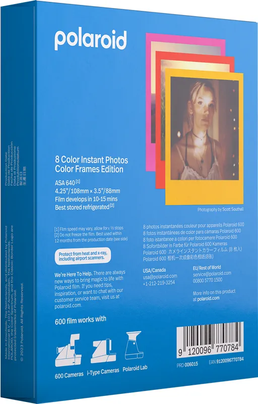 Film, który jest pełen niespodzianek. Osiem natychmiastowych kolorowych zdjęć z ramkami w ciekawych, żywych odcieniach, które dodadzą Twoim pracom wyjątkowego charakteru. Do użytku w aparatach typu Polaroid 600 oraz I. Obrazy zaczynają pojawiać się w ciągu 2 minut. Pełne wywołanie trwa 10-15 minut, w zależności od intensywności oświetlenia. Film typu 600 wykorzystuje nowoczesną technologię do tworzenia zdjęć o przyjemnych, dobrze zrównoważonych kolorach i miękkich teksturach, które sprawiają, że fotografia analogowa jest tak charakterystyczna. Ponadto, mimo że ten film ma wbudowany akumulator do zasilania aparatów z serii 600, może być również używany z aparatami i-Type, które mają własne zasilanie.