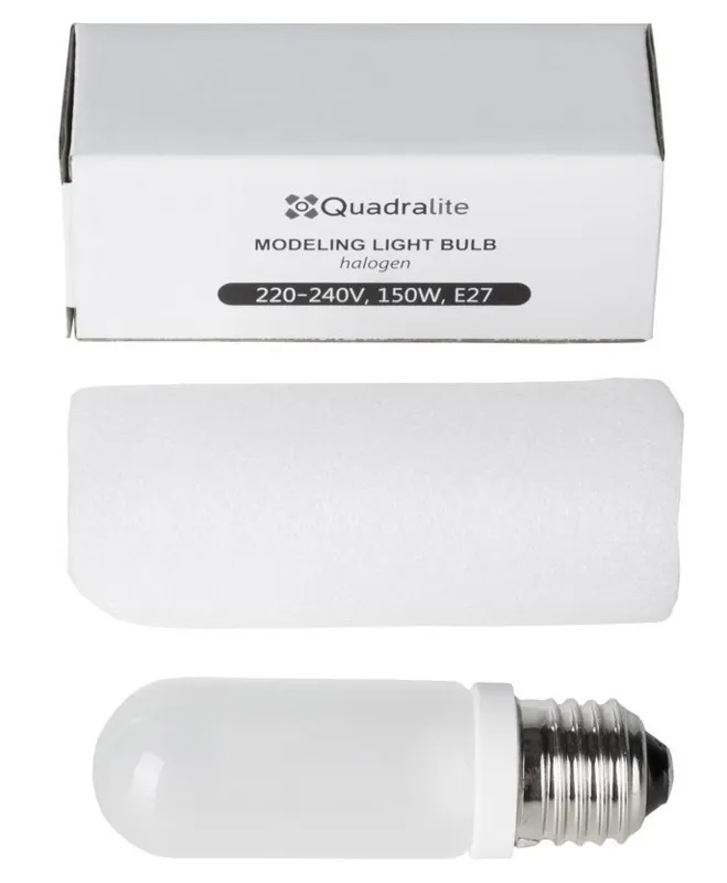 Żarówka modelująca o mocy 150 W z mocowaniem E27 dedykowana do lamp studyjnych Quadralite serii Pulse, Move i UP! Znakomicie sprawdzi się w domowych studiach lub jako uzupełnienie profesjonalnych lamp.