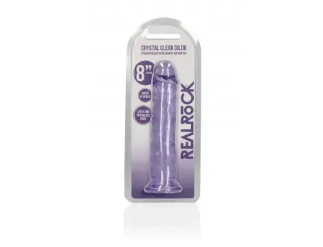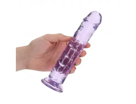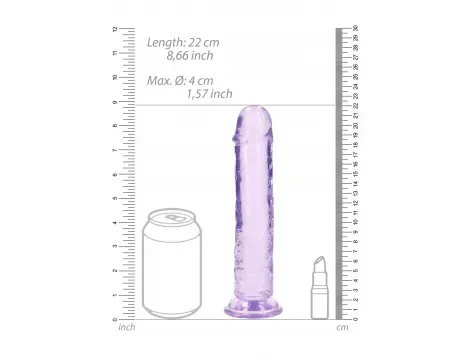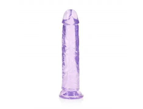 Elastyczne żelowe dildo w kolorze fioletowym o długości 22 cm, z realistycznym żylkowaniem i mocną przyssawką, przeznaczone do stymulacji waginalnej i analnej.