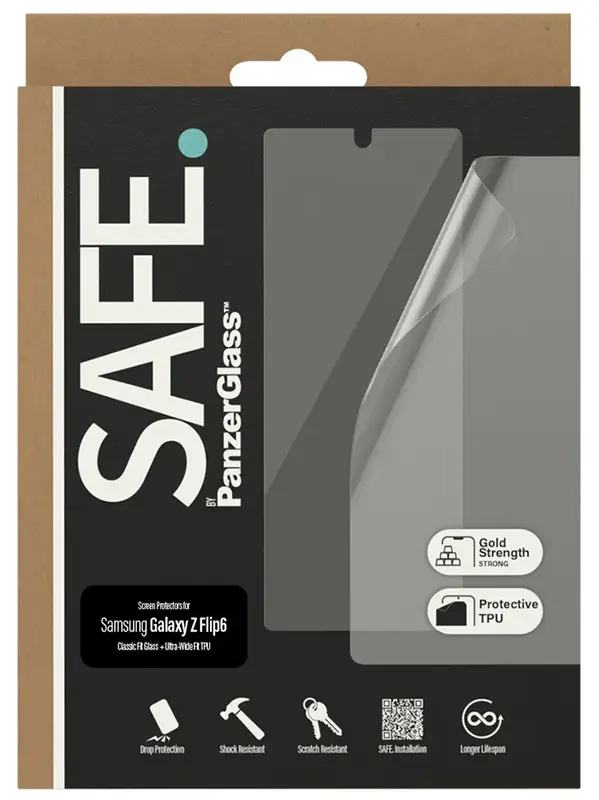 Chroń swój smartfon Samsung Galaxy Z Flip6 przed wpadkami na parkiecie, nieudanymi selfie, przypadkowymi upadkami i zarysowaniami dzięki kompleksowej ochronie obu ekranów Safe. by PanzerGlass.